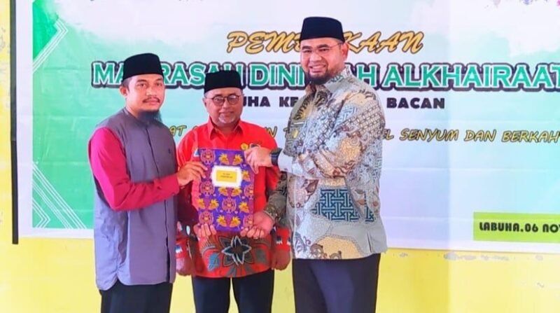 Kasedata.id – Bupati Halmahera Selatan (Halsel), Hasan Ali Bassam Kasuba, meresmikan Madrasah Alkhairaat Diniyah Labuha (MADL) di Kecamatan Bacan, Kamis (6/11/2025). Peresmian ini menandai komitmen pemerintah daerah dalam memperkuat pendidikan berbasis keislaman di Halsel.
