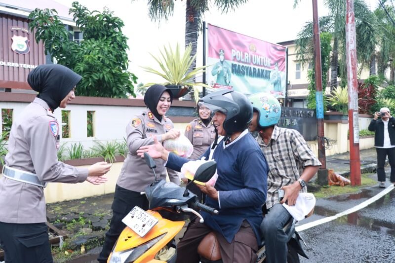 Kasedata.id – Guna meningkatkan kepedulian terhadap masyarakat dan mempererat silaturahmi di bulan suci Ramadan, Polres Ternate menggelar kegiatan pembagian takjil kepada warga yang melintas di Jalan Raya Kelurahan Takoma, Kecamatan Ternate Tengah, Jumat (6/3/2026).