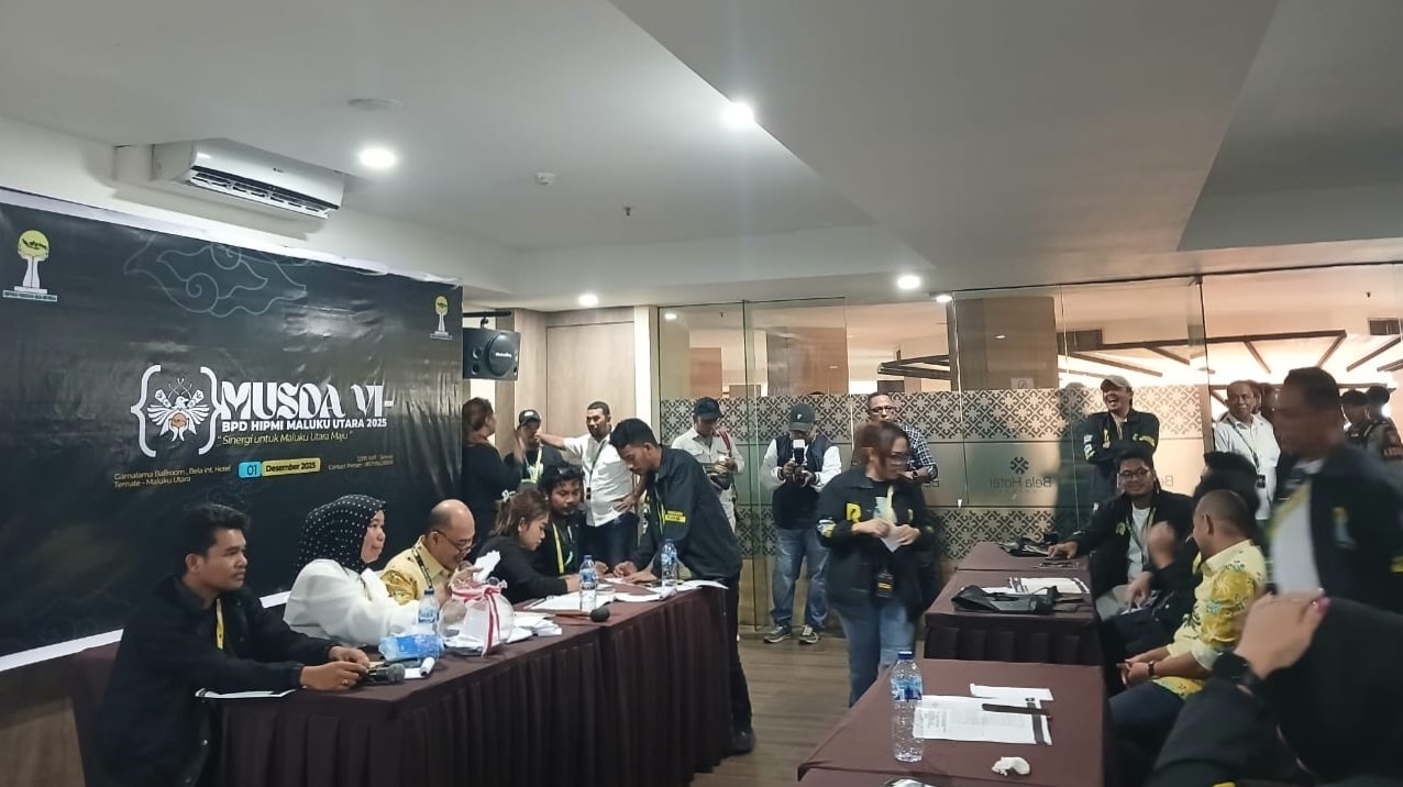Kasedata.id — Musyawarah Daerah (Musda) Himpunan Pengusaha Muda Indonesia (HIPMI) Maluku Utara untuk memilih Ketua Umum periode 2025–2028 akhirnya tuntas digelar, Selasa (2/12/2025). Musda yang berlangsung selama dua hari di Bela International Hotel Ternate itu resmi ditutup dengan proses penghitungan suara yang dipimpin oleh pimpinan sidang, Mohdar Bailusy.